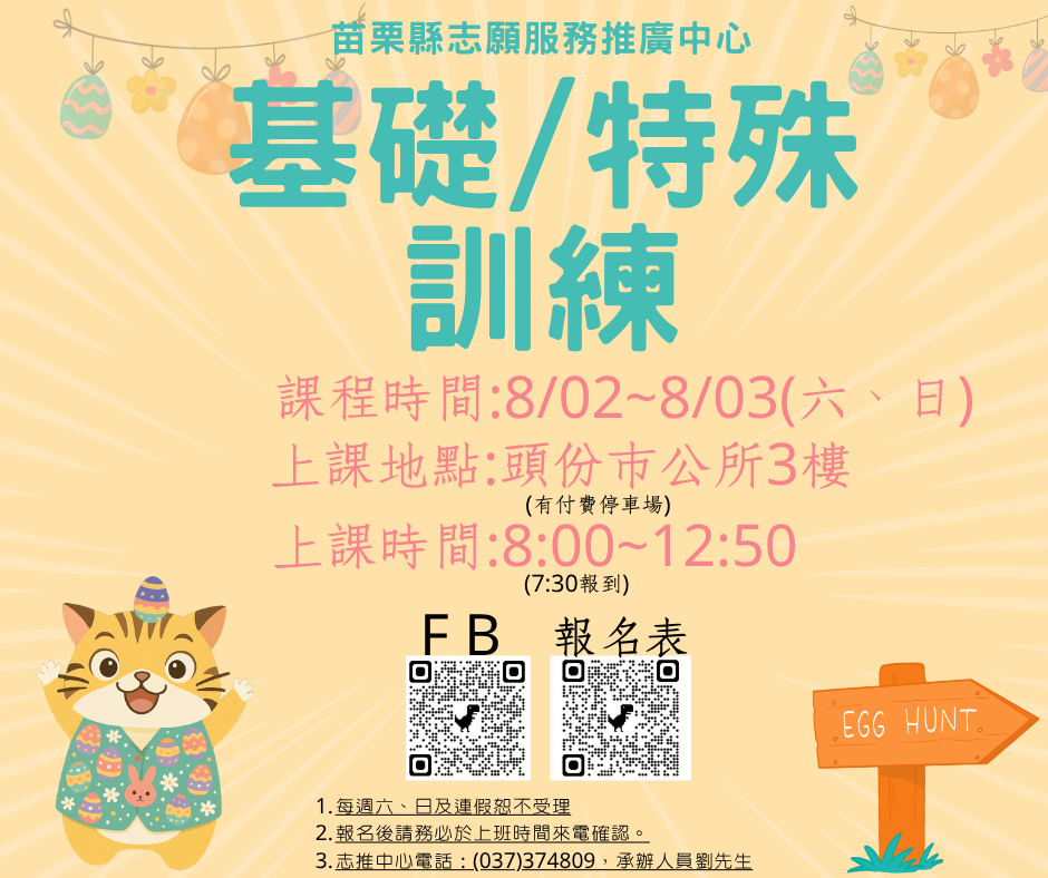 一、訓練日期:8月2日(六)、8月3日(日),時間8:00~12:50(7:30-8:00為報到時間,8:00準時開始)